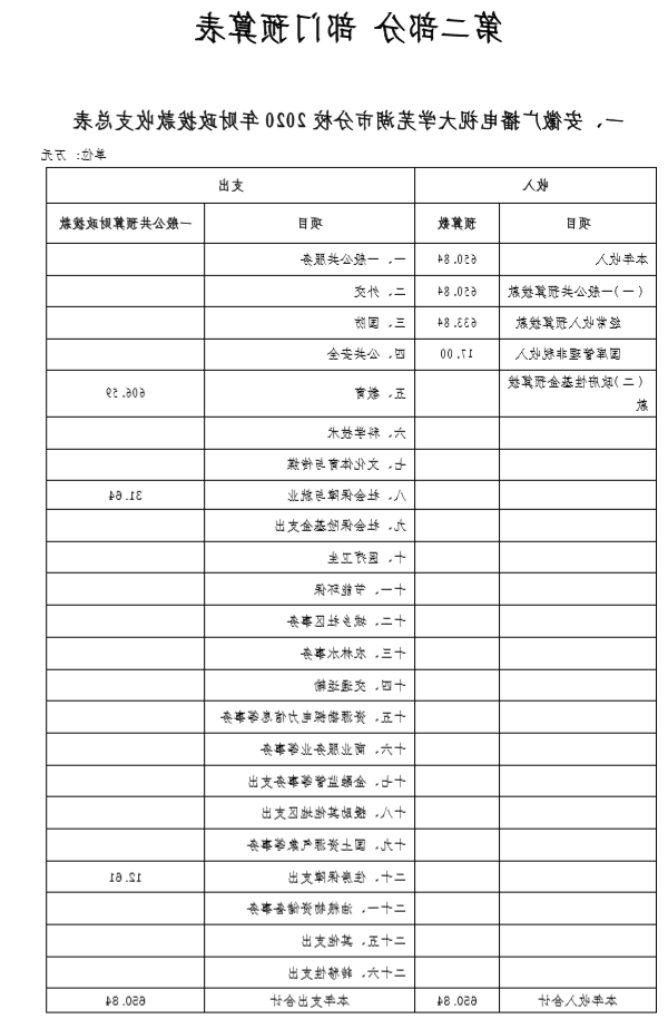 安徽广播电视大学芜湖市分校2020年部门预算 - 芜湖开放大学